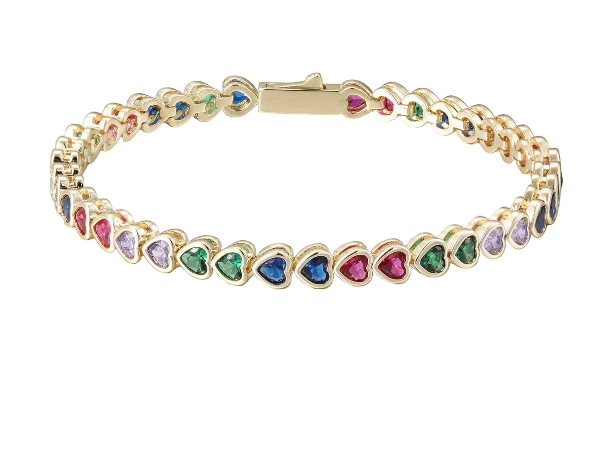 Gold plated bezel set rainbow cubiz zirconia heart bracelet