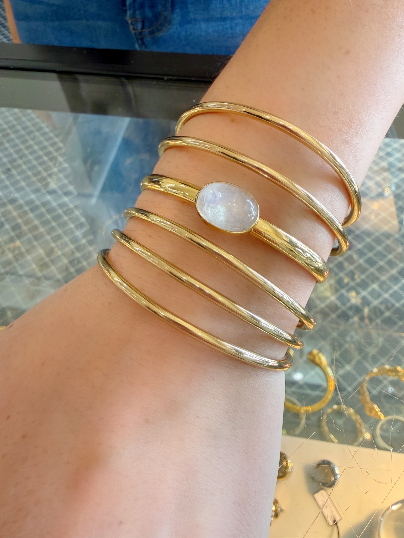 Gold tone non tarnishing adjustable cuffs that can be styled alone or worn together