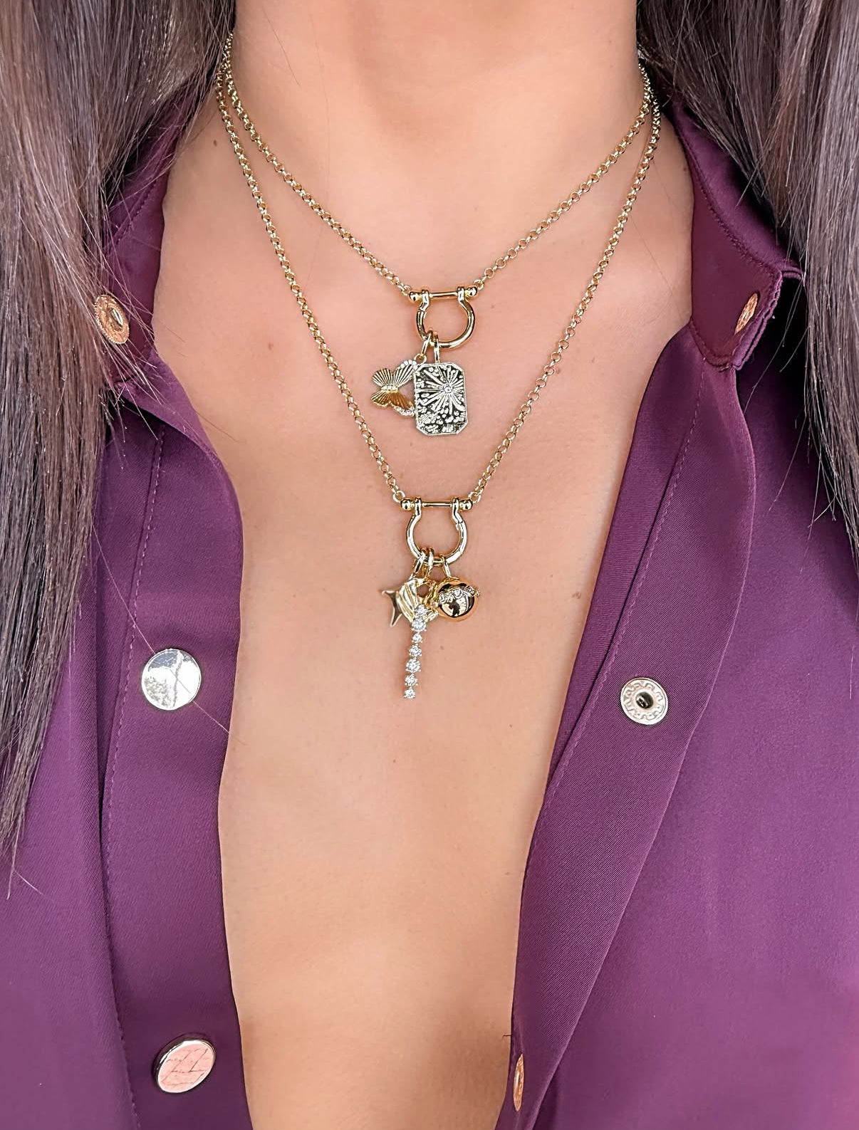 - This necklace features a bold horseshoe-shaped clasp to carry your favorite charms—one necklace, endless ways to hold your layered charm story.