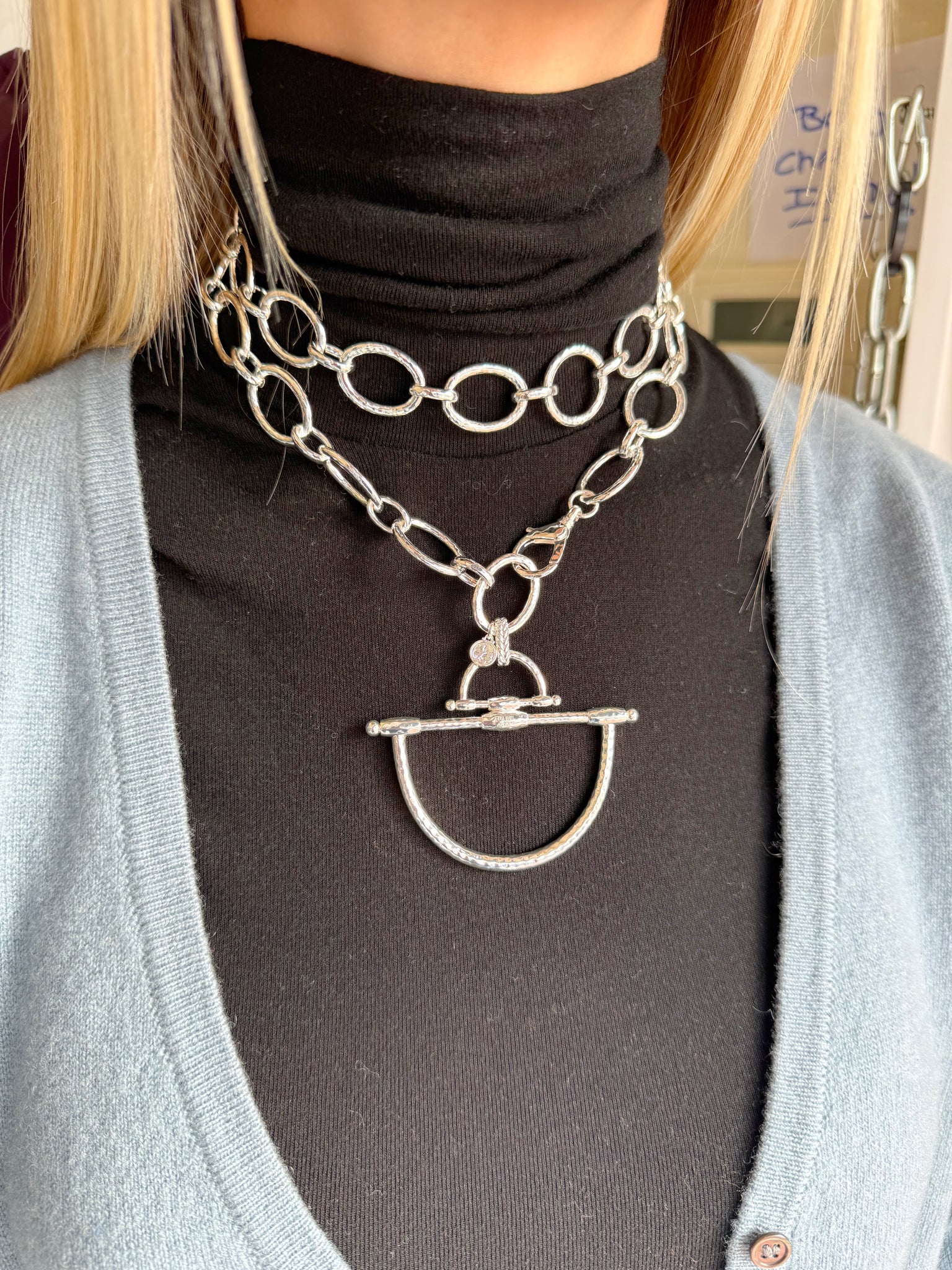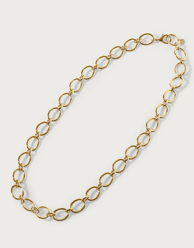 • The Cheval Chain Necklace is the essential chain to make an elegant statement. With its long length, it allows for versatility to wear doubled or as a lariat, soft hammered texture