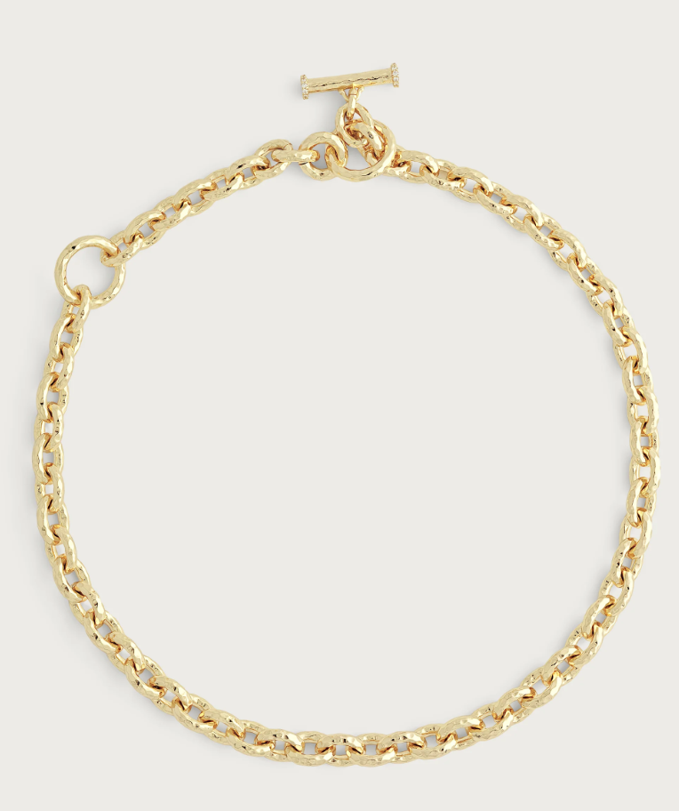 18k gold plated hammered chain with toggle. Can also be worn as a lariat