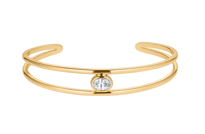 14k gold plated with bezel cubic zirconia oval shaped stone in clear or black