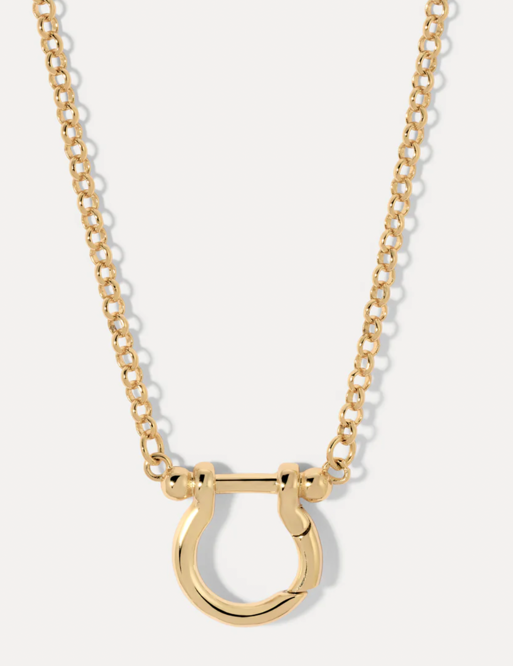 This necklace features a bold horseshoe-shaped clasp to carry your favorite charms—one necklace, endless ways to hold your layered charm story.